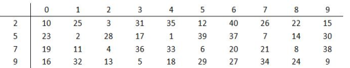 随后小偷们又改变了方法,将这些记号从 1 到 N 编号,然后将这些编号按照某种规则重新打乱再做标记,标记变成了一串数字。不过这种新的编号方法又被破译了!干警们发现这些数字的规律可以用一个二维矩阵来表示:矩阵有 10 列,顺序对应数字 0 到 9;矩阵一般不超过 10 行,每行对应一个 0 到 9 之间的数字,这些数字保证不重复。小偷的新标记由若干个两位数组成,每个数字的十位对应行、个位对应列,而对应位置上的数字就是原始标记的编号。